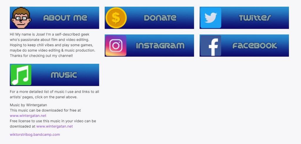 Created graphic design elements for personal Twitch channel including stream layout, emotes, Twitch panels, and various other elements.